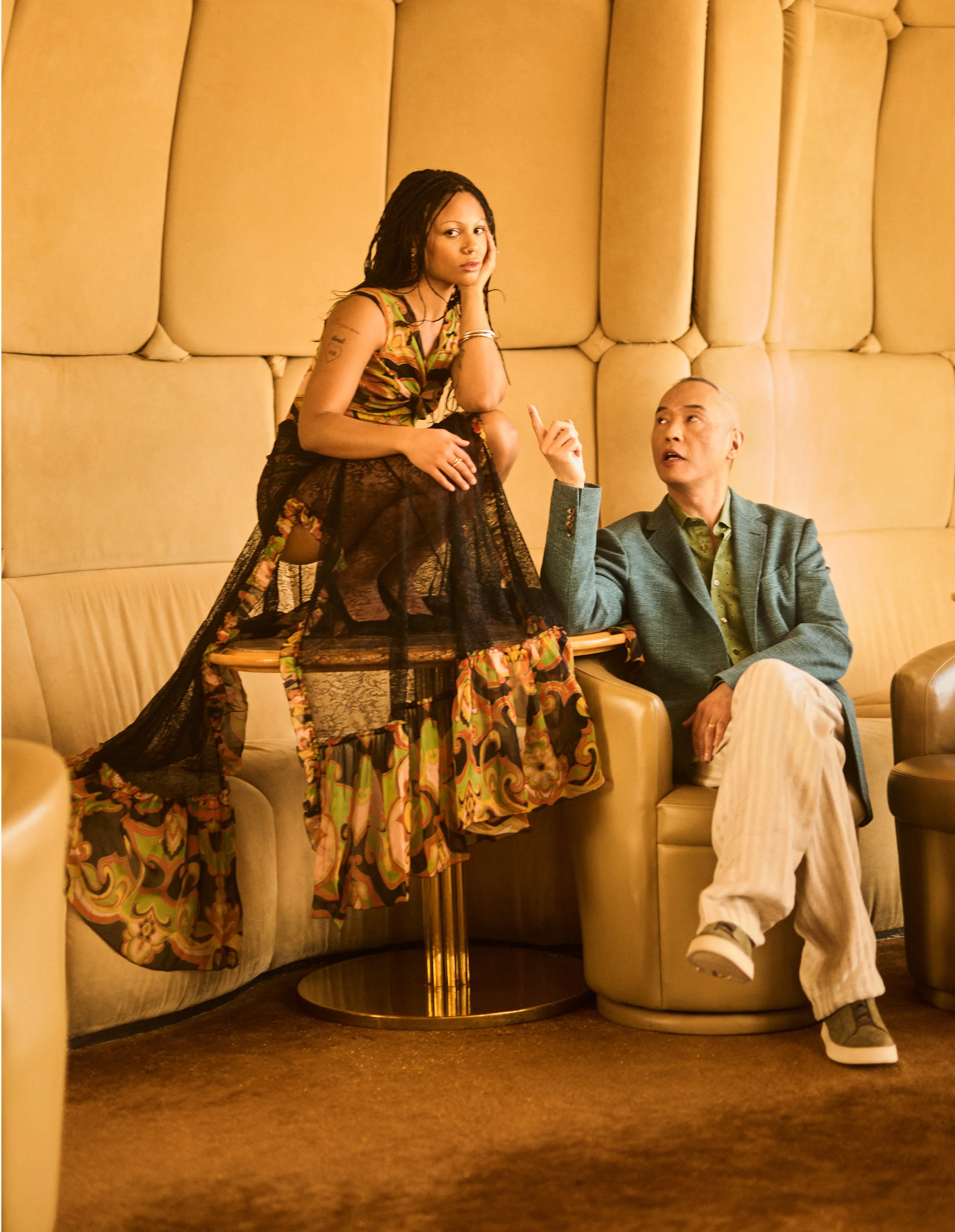 Myha’la wears: total look ETRO, jewelry CARTIER. Ken wears: total look ETRO.
