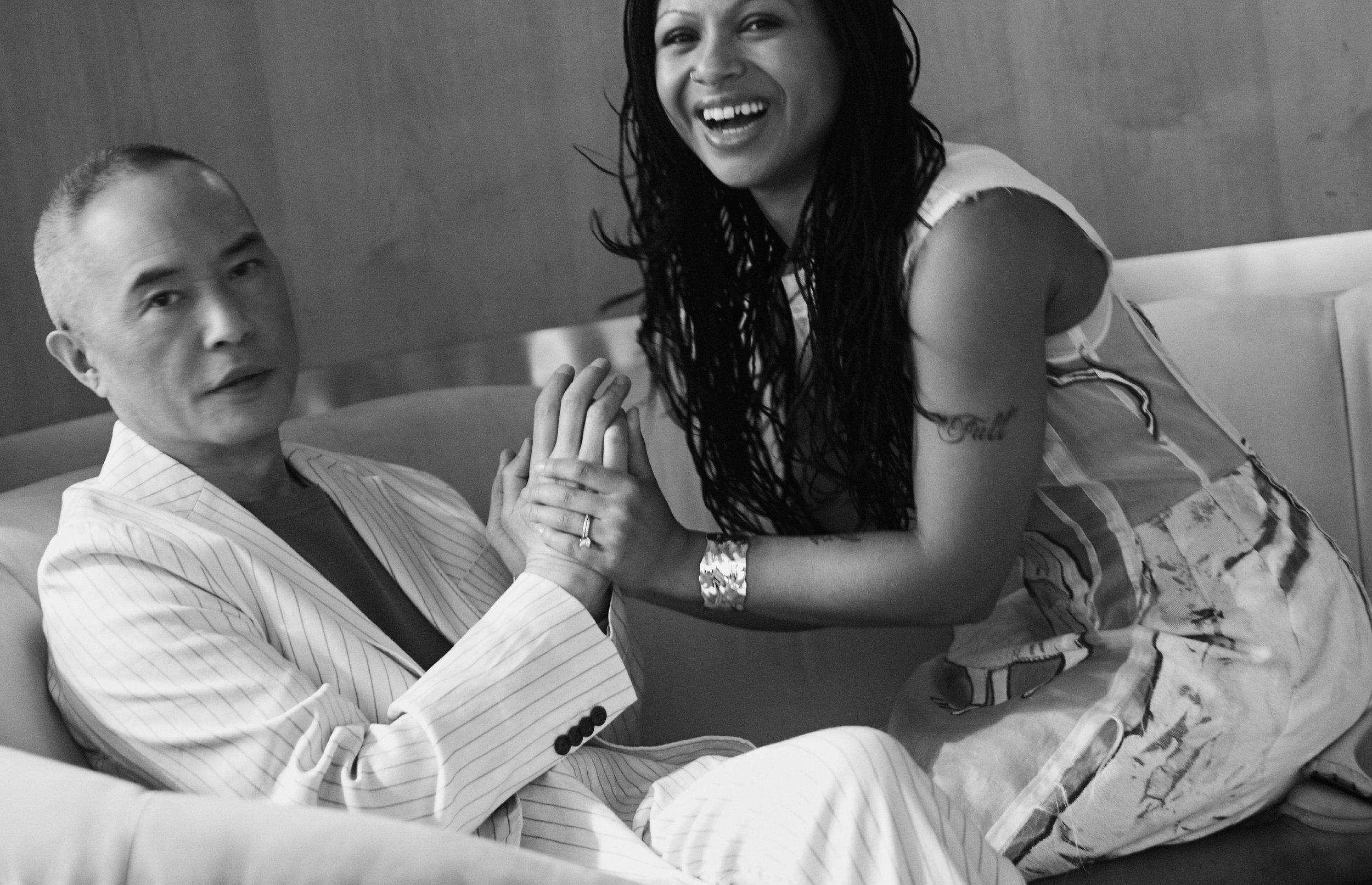 Ken wears: jacket and pants HILFIGER COLLECTION, shirt CALVIN KLEIN. Myha’la wears: dress JASON WU COLLECTION, shoes AERA.