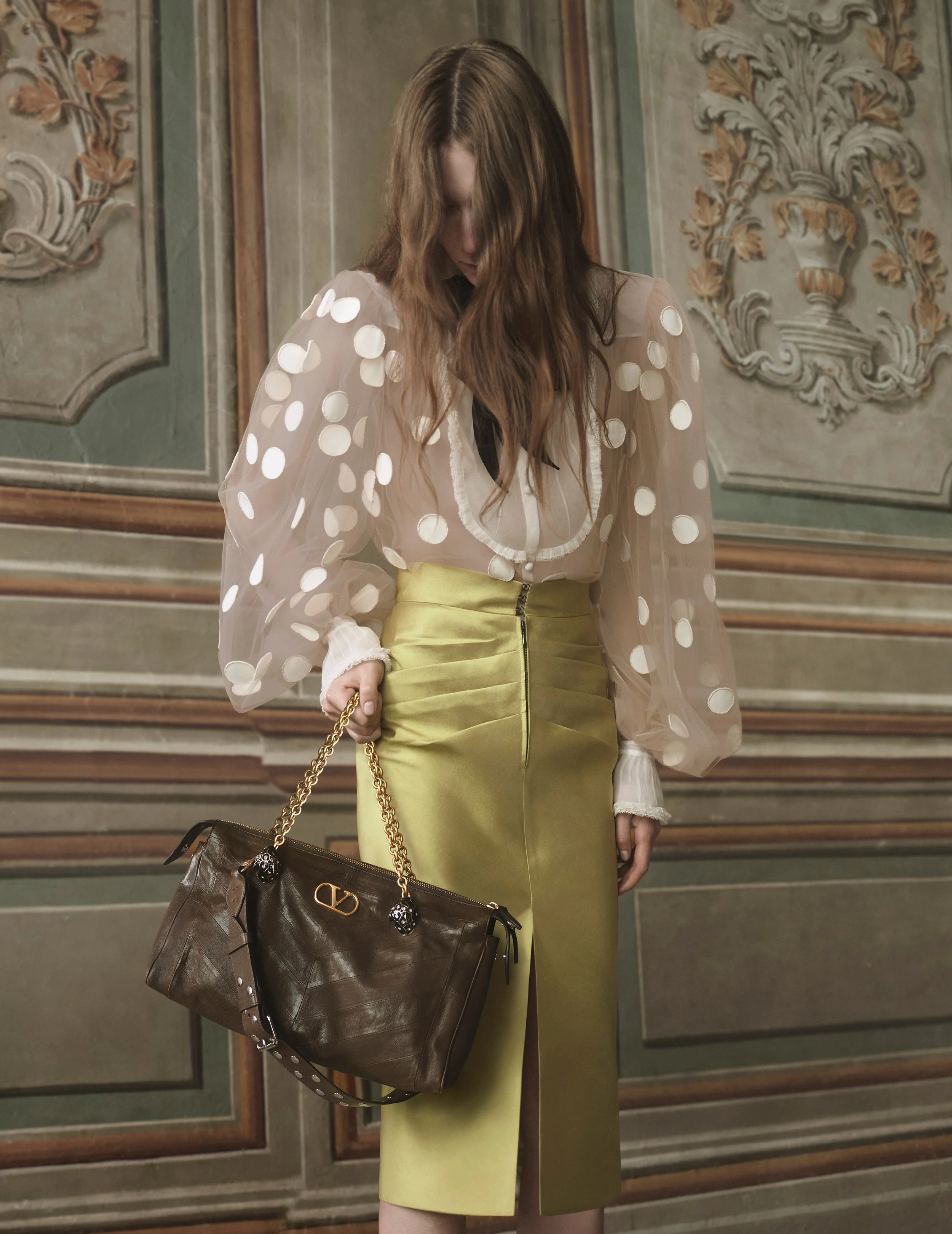 Fashion usually celebrates control. Perfect posture. Perfect silhouettes. The idea that elegance means holding everything together. The summer campaign from Valentino moves in another direction. It begins with something simpler, and far more true: the moment we lose balance. Falling is universal. Not always in a intense way, but in the small ways life shifts under our feet. Balance, after all, is never permanent. It’s a brief moment between movements, something we’re constantly adjusting. In this campaign, that feeling becomes the central image. The cast appear suspended in time, caught in the instant just before gravity takes over inside the grand historic building. The tension is silent but unmistakable. Elegance is still there, but it feels alive, as if it could break at any moment.
