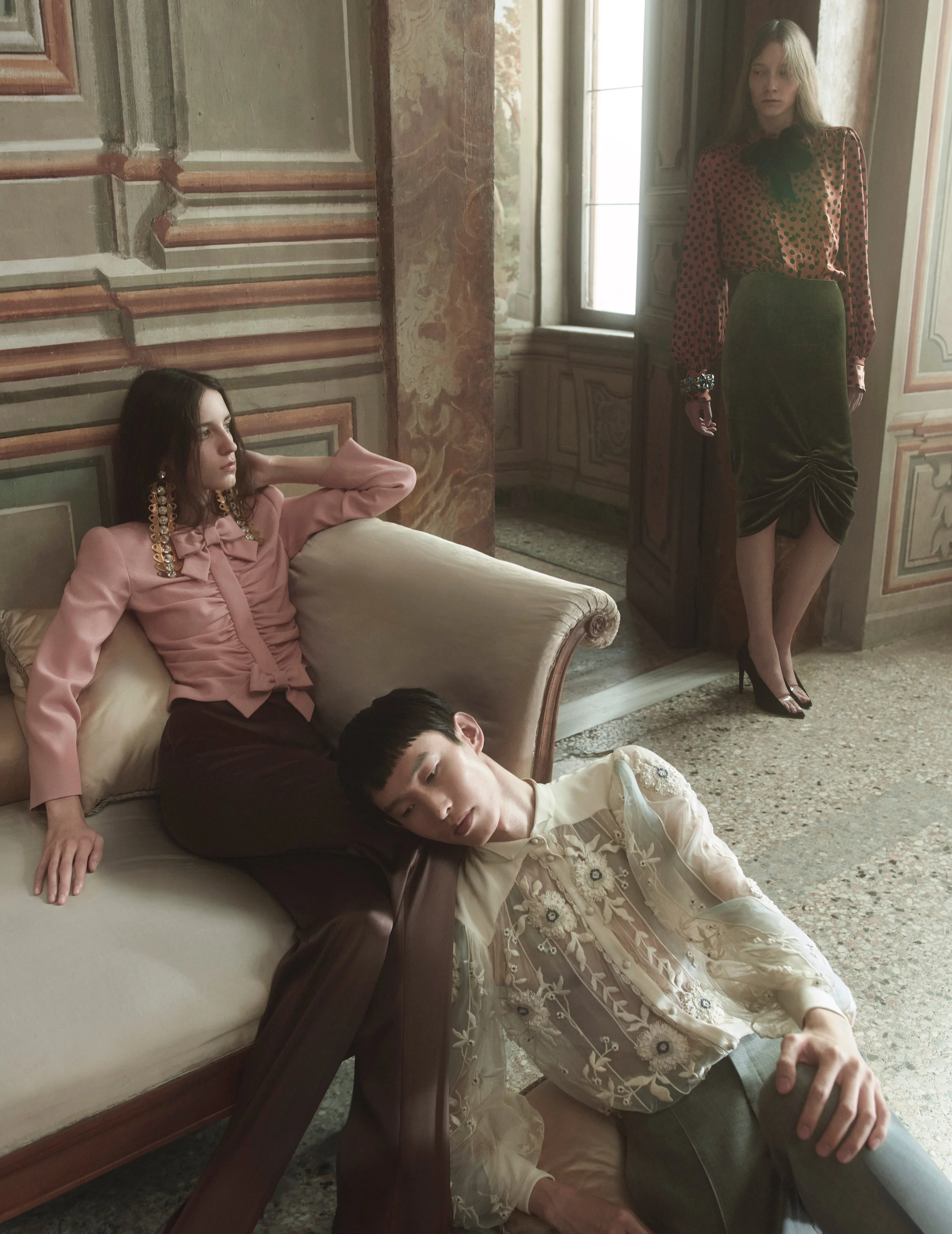 Courtesy of Valentino. Creative Director: Alessandro Michele, Photographer and Director: Willy Vanderperre, Art Director Christopher Simmonds, Stylist Jonathan Kaye, Set Designer Victoria Salomoni, Hair Esther Langham, Makeup Yadim Carranza, Manicure Sara Ciufo, Casting Director Rachel Chandler, Cast: Emese Nyiro, Peris Adolwi, Malena Tafel , Chloe Oh, Valery Sergeeva, Amos Laermans, Siddartha, Saliou Gueye, Lv Yfan.